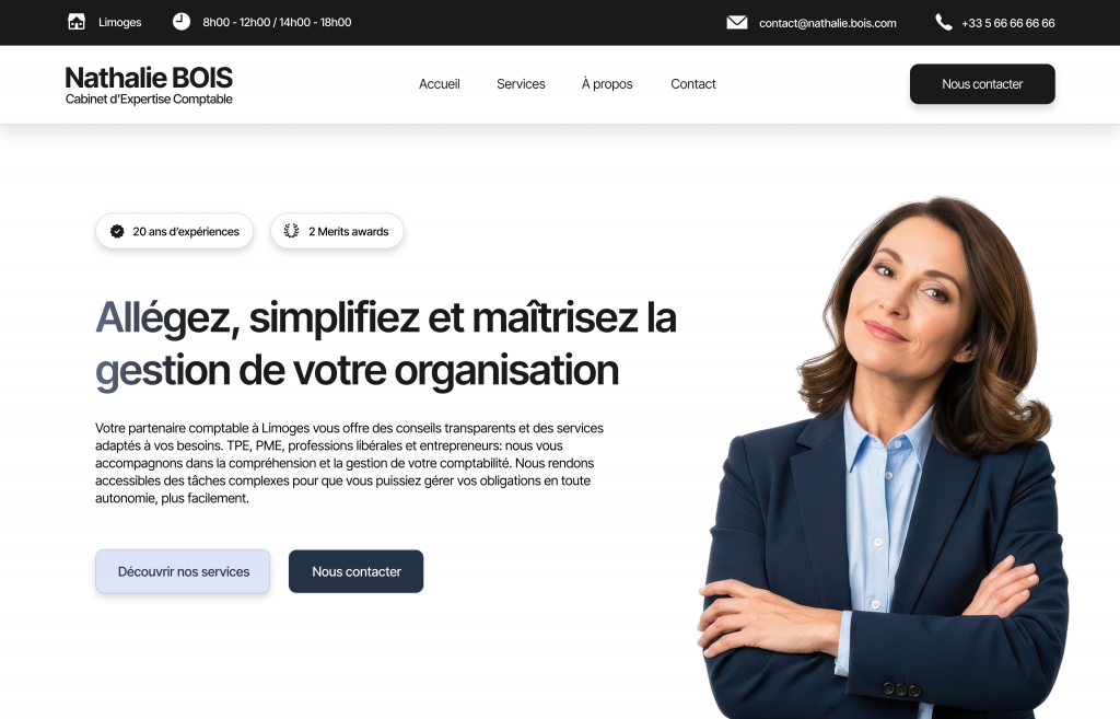 Nous avons conçu un site multi-page, premium et moderne, qui reflète l’identité de Nathalie Bois et valorise son approche numérique.